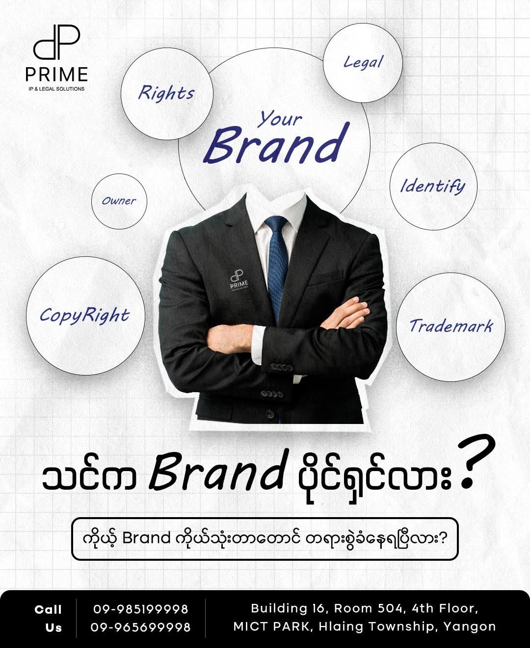 သင့်ရဲ့ ကုန်အမှတ်တံဆိပ် (Trademark) ကို မူပိုင်ခွင့် ဦးစီးဌာန (IPD) တွင် အမြန်ဆုံး တရားဝင် မှတ်ပုံတင် (Register) ပြုလုပ်ပြီး Filling Date ဦးစွာယူလိုက်ပါ။